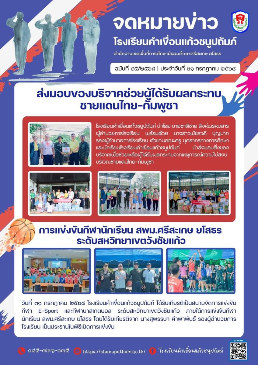 เว็บไซต์หลัก โรงเรียนคำเขื่อนแก้วชนูปถัมภ์ Khamkhueankaeo Chanupatham School , 564 หมู่ 2 ถนนแจ้งสนิท ต.ลุมพุก อ.คำเขื่อนแก้ว จ.ยโสธร 35110