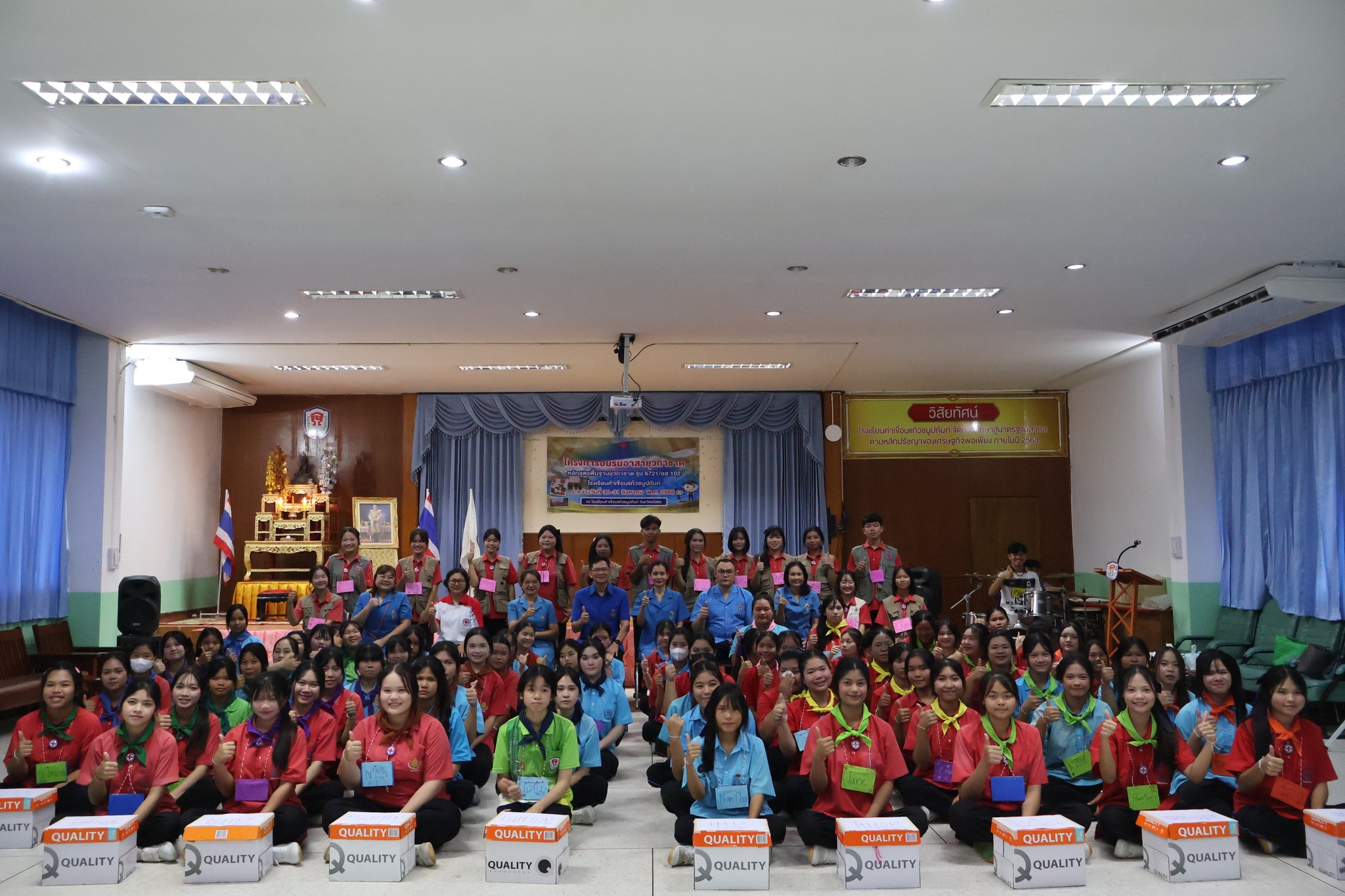 โรงเรียนคำเขื่อนแก้วชนูปถัมภ์ กลุ่มกิจกรรมพัฒนาผู้เรียน ดำเนินโครงการอบรมอาสายุวกาชาด หลักสูตรพื้นฐานยุวกาชาด รุ่นที่ 6721/ยส.102 โดยได้รับเกียรติจาก นายชาติชาย สิงห์พรหมสาร ผู้อำนวยการโรงเรียน เป็นประธานในพิธีเปิด พร้อมด้วย นางสาววิภาวี ดวงมุลตรี รองผู้อำนวยการโรงเรียน คณะครูผู้นำยุวกาชาด และนักเรียนจำนวน 129 คน เข้าร่วมกิจกรรม ณ ห้องประชุมอนุสรณ์ 40 ปี